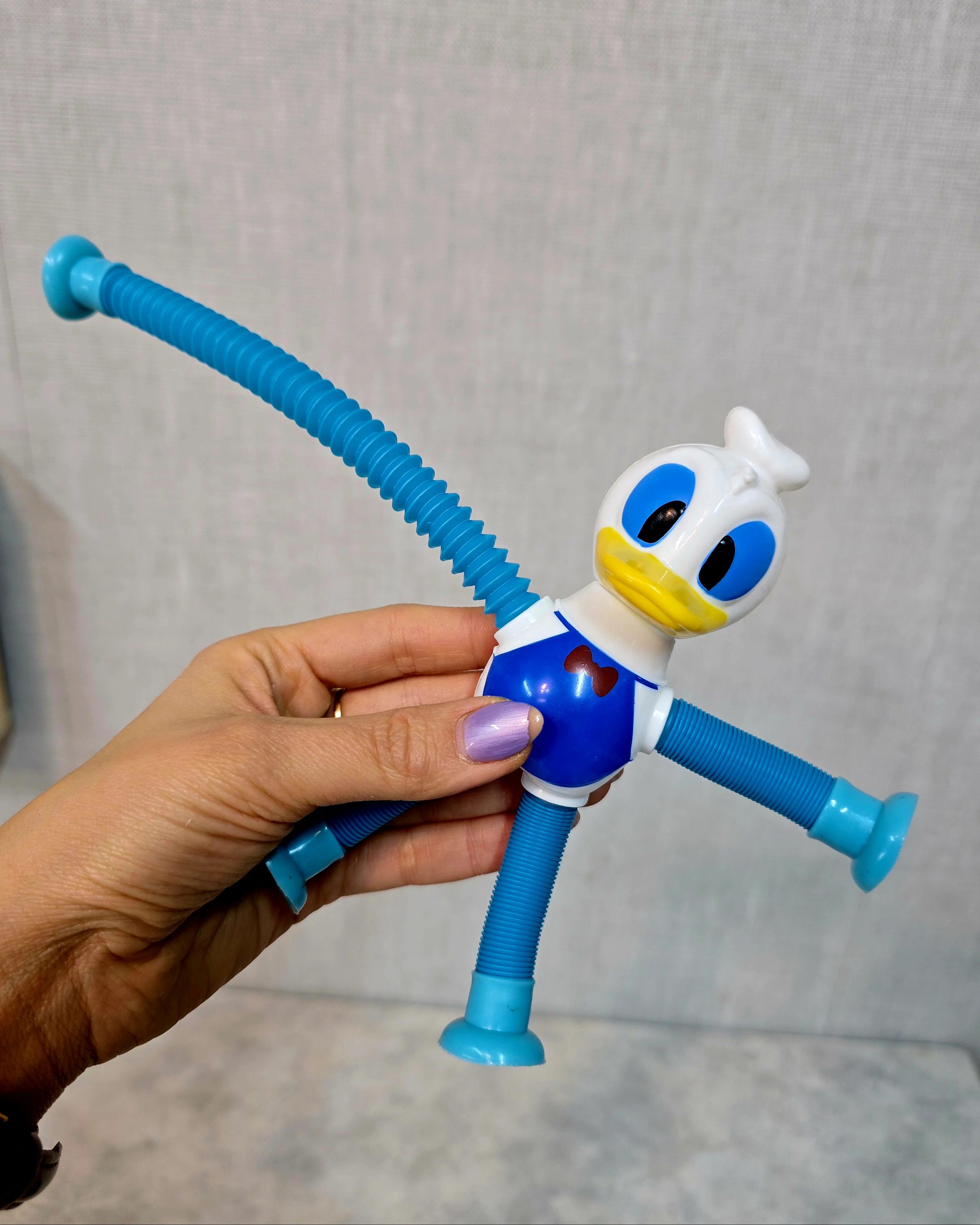 اردک چراغ دار که دست و پاهای آن از لوله های حسی فنری میباشد و با هربار باز کردن آن کودک شما غرق در شادی خواهد شد. علاوه بر این فرایند کودک شما ناخواسته عضلات دست خود و حس شنوایی خود را تقویت کرده است جالب است ک بدانید این اردک زیبا با تکان خوردن میتواند چراغی چشمک زن بزند و این پایان ماجرا نیست شما میتوانید این وسیله راه توسط دست و پاهایش به سطوح صاف متصل کنید و از کشیدن آن و کنده شدندش همراه کودک خود لذت ببرید.