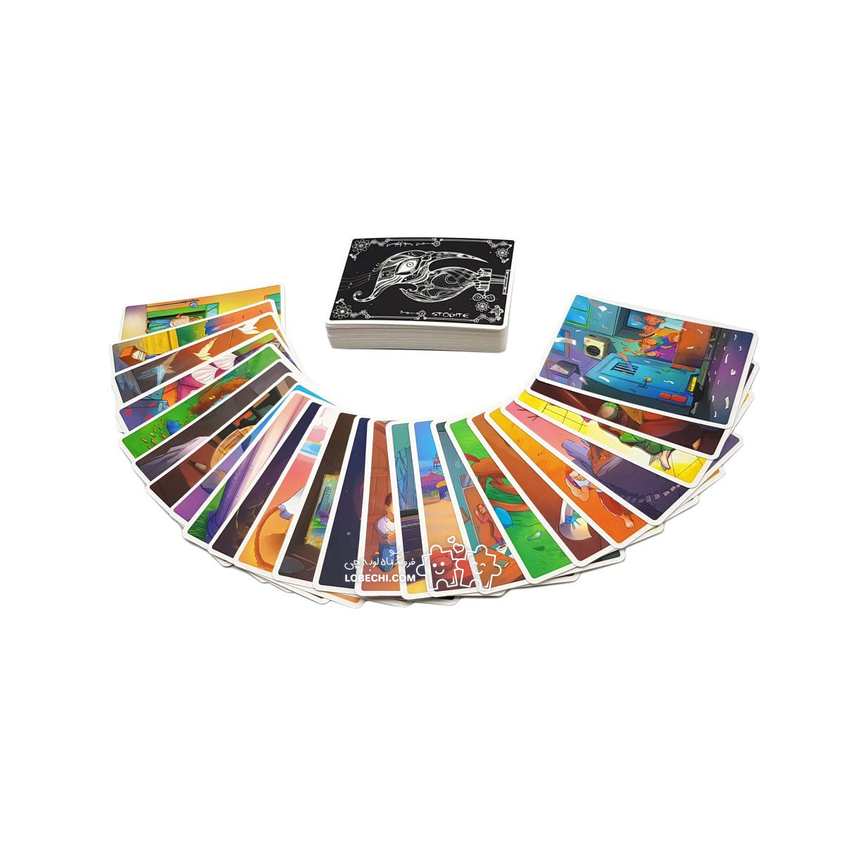 | اقلام همراه | ۱ صفحه امتیازدهی, ۱ کیسه پارچه ای, ۱۲ کارت رای گیری بازی دونفره, ۶۴ کارت رای گیری بازی گروهی, ۸ مهره امتیازشماری, ۹۶ کارت تصاویر, دفترچه قوانین بازی دونفره, دفترچه قوانین بازی گروهی |