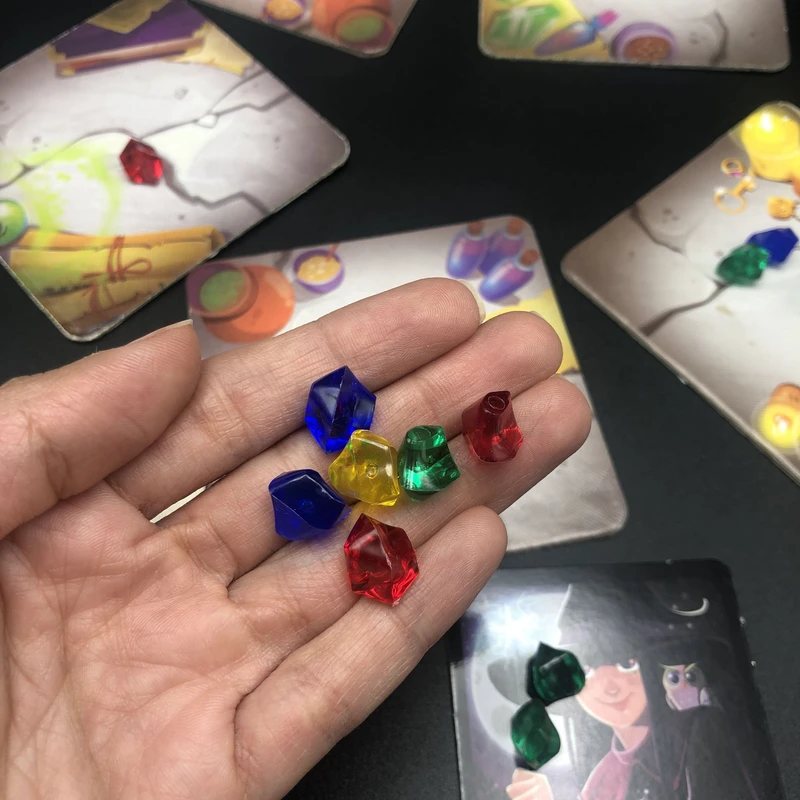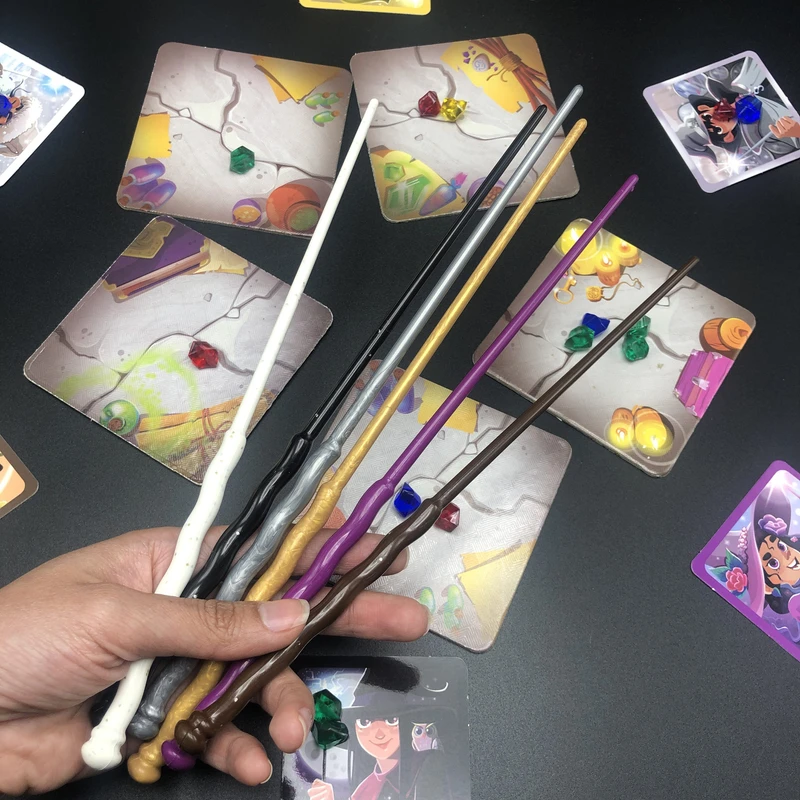 هر کارت شامل تعدادی جواهر است و بازیکنان پس از شنیدن جمله معروف «اجی… مجی… بوم!» باید با سرعت یکی از کارتها را با چوب جادویی خود نشان دهند. اگر فقط شما به آن کارت اشاره کرده باشید، تمام جواهرات آن را به دست میآورید! اما حواستان باشد، چون سایر بازیکنان نیز میتوانند جواهرات شما را بدزدند.
