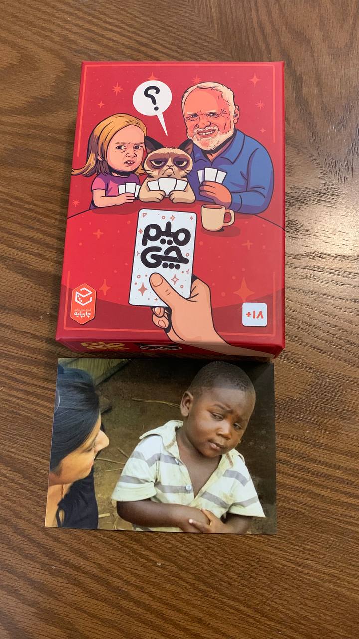بازی ایرانی میم چی یک پارتی گیم خاص و خندهدار با ترکیب میمهای بامزه و جملههای طنزآمیزه. با ۲۵۰ کارت جمله و ۶۴ تصویر خلاقانه، بازیکنان باید خندهدارترین ترکیب رو بسازن و قاضی رو تحت تأثیر قرار بدن! مناسب دورهمیهای شاد و پرخنده برای منفجر کردن مهمونی ها!!!