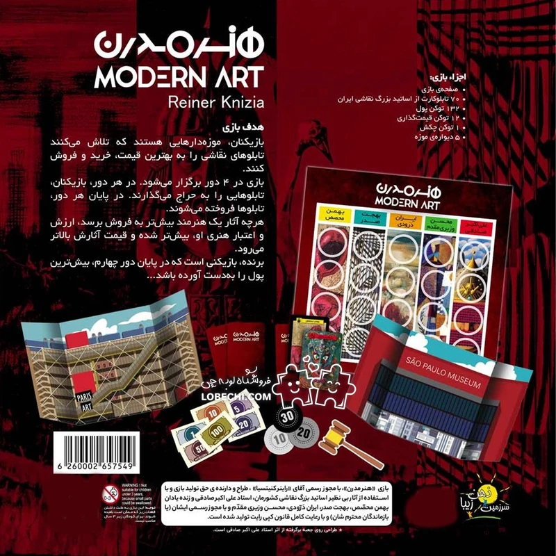 بازی هنر مدرن یک بازی رومیزی اقتصادی و مزایدهای جذاب است که شما را در نقش مدیر گالری و مجموعهدار قرار میدهد. اگر به بازیهایی علاقه دارید که در آنها باید با تحلیل، پیشبینی و مدیریت پول تصمیم بگیرید، این بازی دقیقاً مناسب شماست. در بازی هنر مدرن شما تابلوهای هنری را در مزایدهها میخرید و میفروشید، قیمتها را بالا و پایین میکنید و تلاش میکنید در پایان بیشترین سود را به دست آورید.