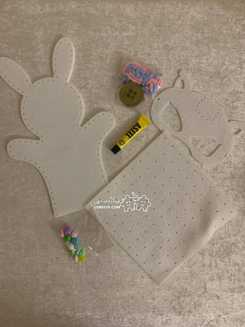 • تزئینات متنوع مثل دکمه، روبان، و مهره