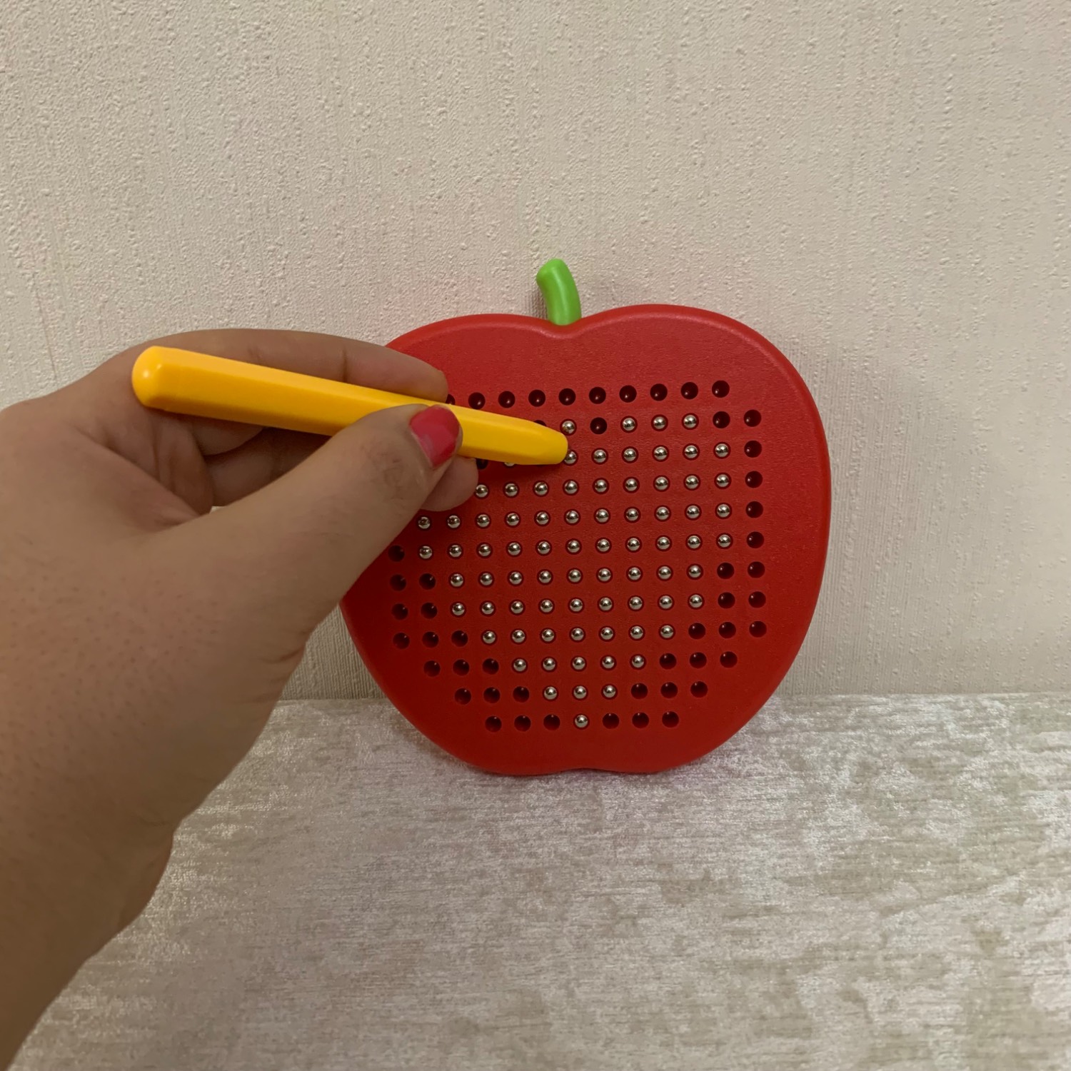 تخته طراحی مگنتی سیب یک اسباببازی آموزشی جذاب برای کودکان بالای ۳ سال است که با توپهای فلزی–آهنربایی و یک مداد مگنتی کار میکند. این بازی به کودک فرصت میدهد الگوها و طرحهای مختلف را روی صفحه ایجاد کند و در عین بازی، دقت، تمرکز و خلاقیتش را تقویت کند.
