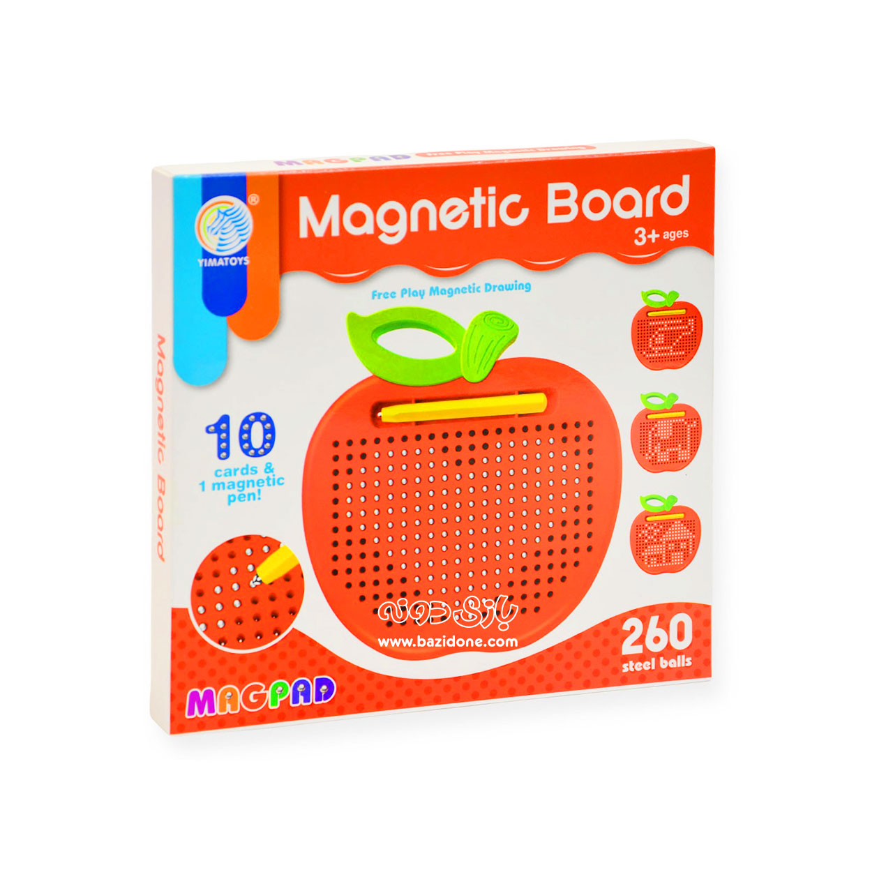 تخته طراحی مگنتی سیب یک اسباب‌بازی آموزشی جذاب برای کودکان بالای ۳ سال است که با توپ‌های فلزی–آهنربایی و یک مداد مگنتی کار می‌کند. این بازی به کودک فرصت می‌دهد الگوها و طرح‌های مختلف را روی صفحه ایجاد کند و در عین بازی، دقت، تمرکز و خلاقیتش را تقویت کند.