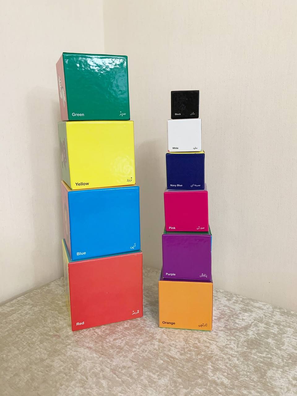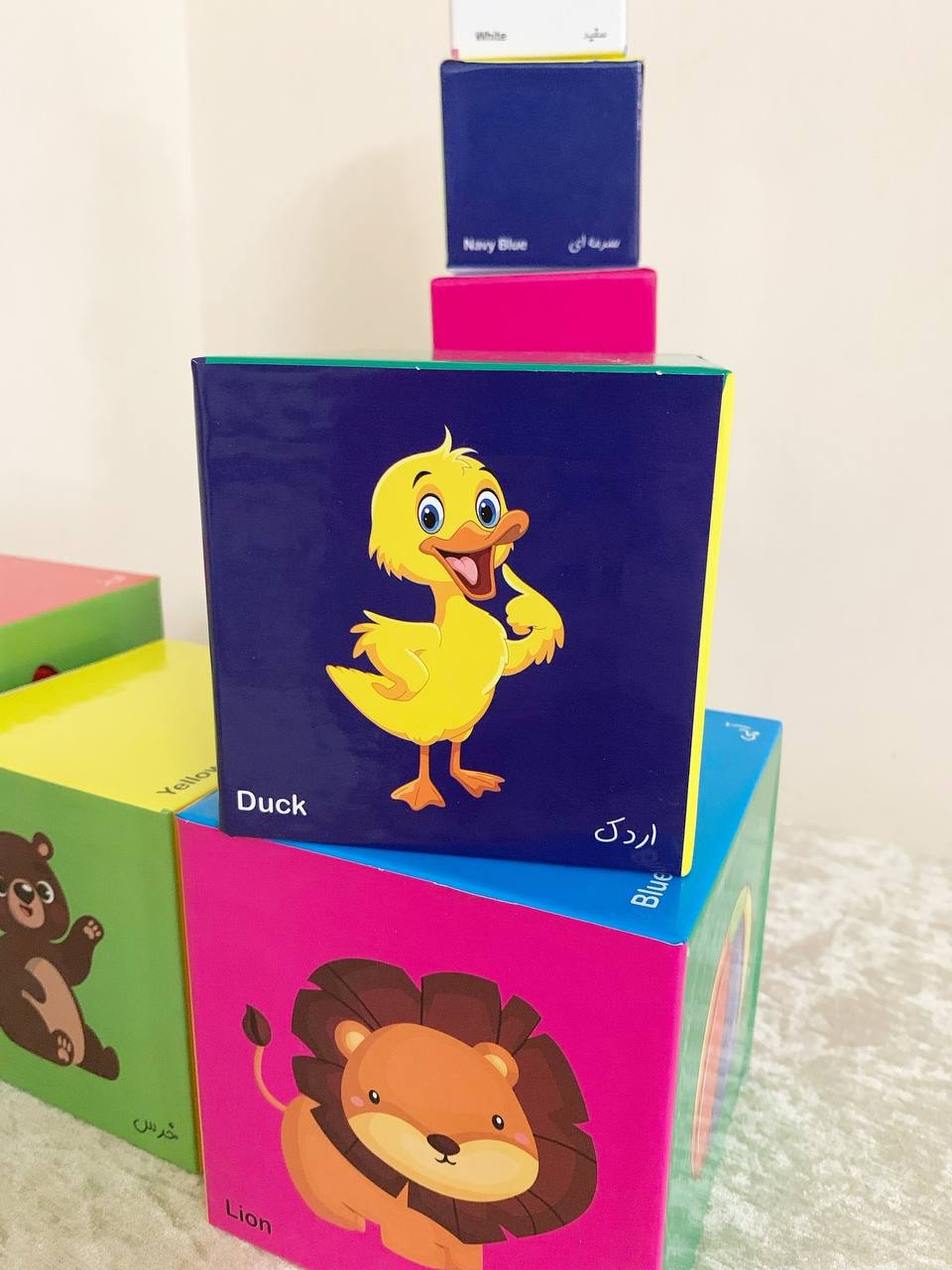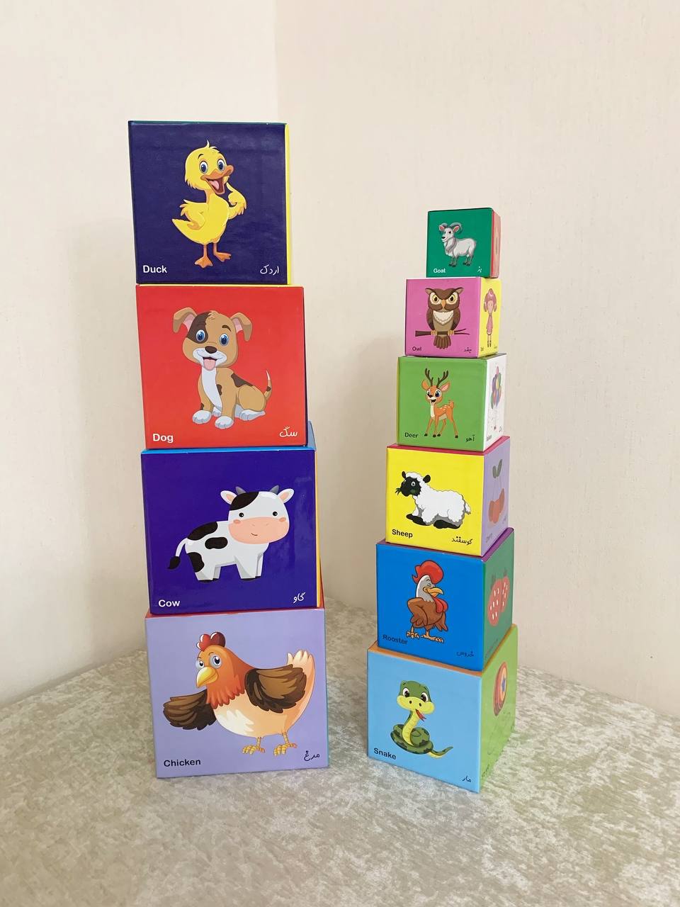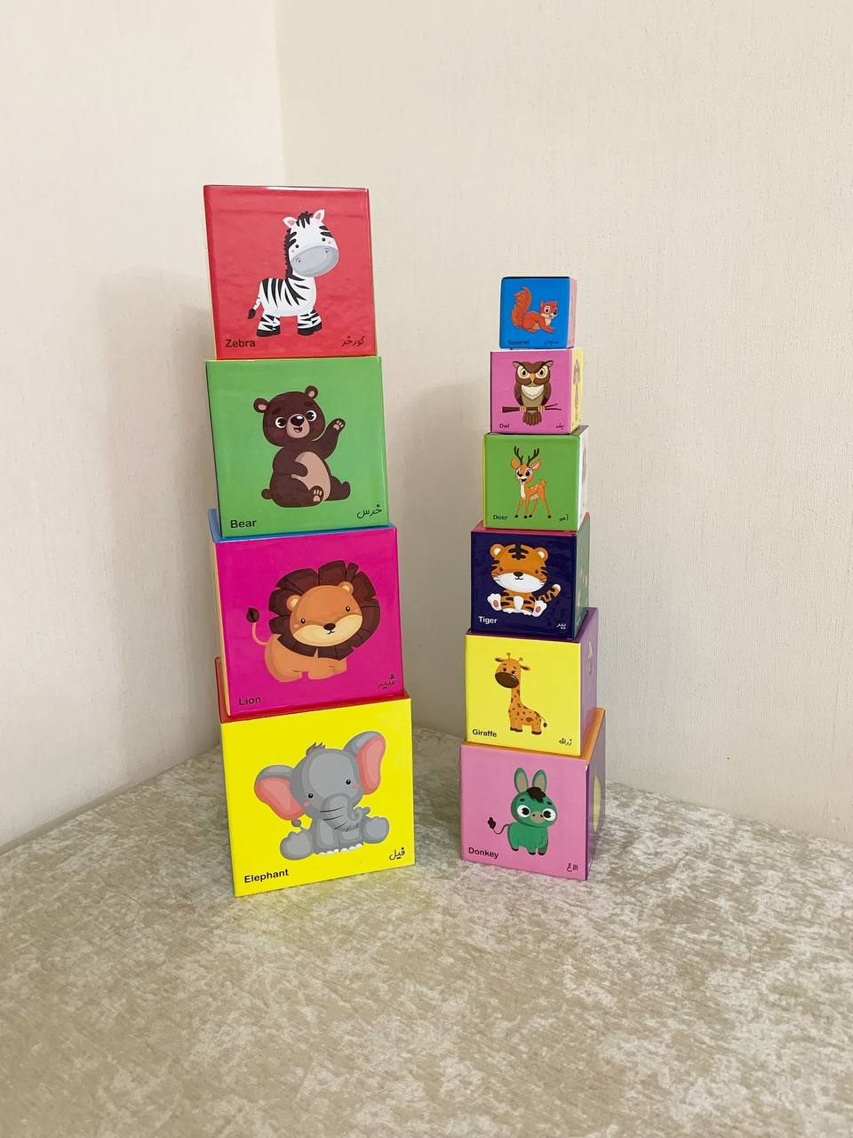 ابن مکعب ها برای کودکان 2 سال ب بالا مناسبه .با این اسباب بازی کودک میتونه مفاهیم ساده و ببینه و خیلی زود یاد بگیره.جنس بازی برج مکعب مقوای ضخیمه و براحتی خراب نمیشه.