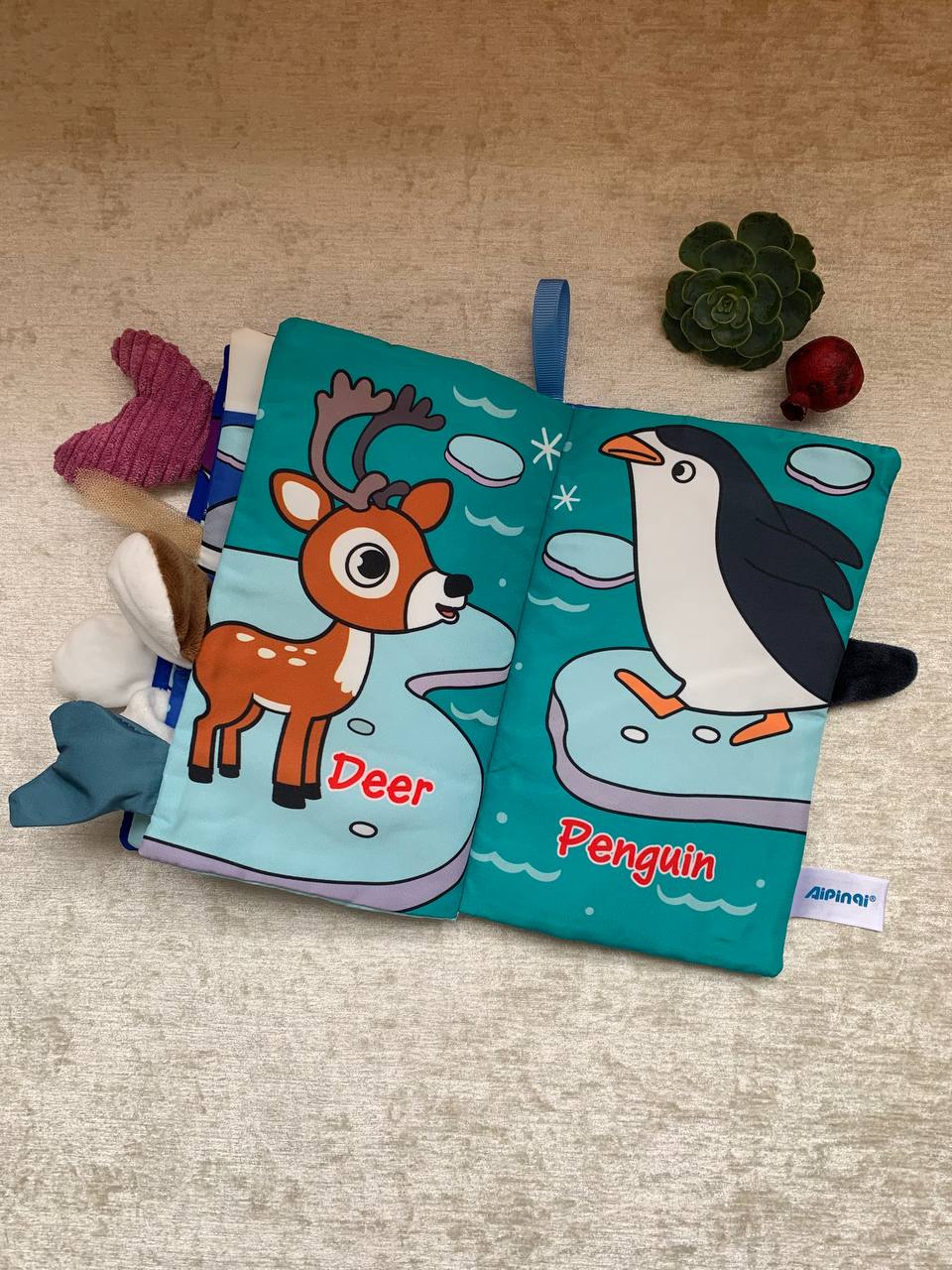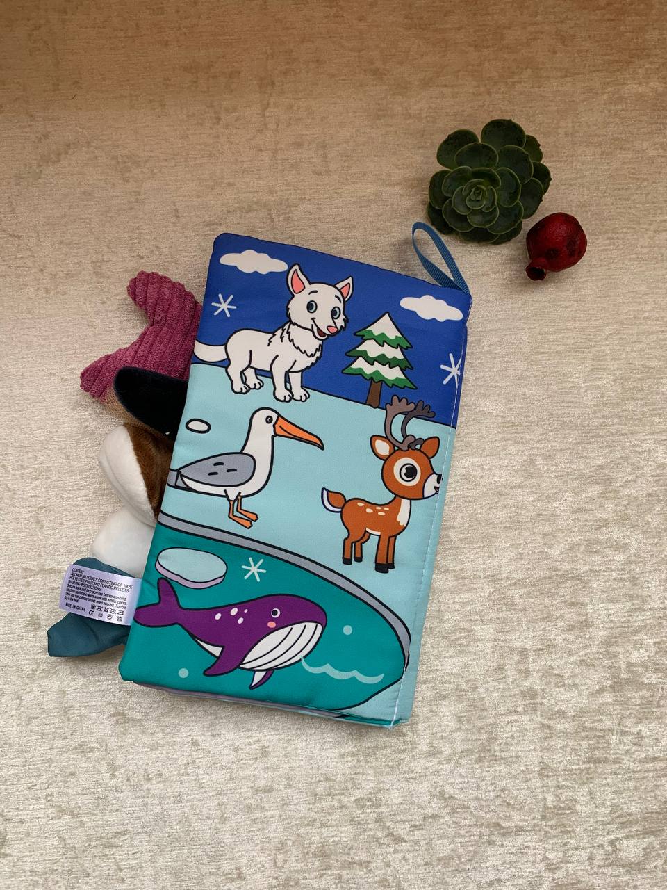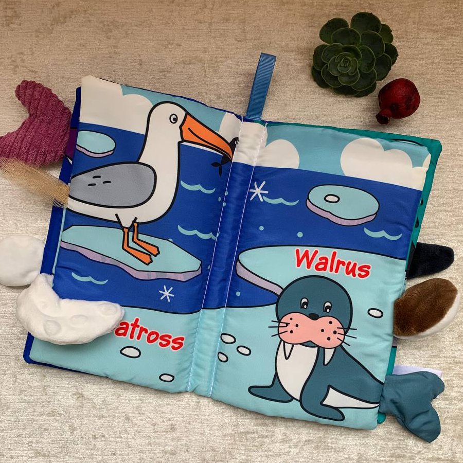 کتاب پارچهای مدل مستطیل دُمدار دقیقاً همون چیزیه که بچه از همون اول میگیره دستش و دلش نمیخواد ولش کنه! چون فقط یک کتاب نیست؛ یه ترکیب بامزه از کتاب + اسباببازی حسیه. دم حیوانها از کنار صفحات بیرون زده و بچه میتونه دمها رو بگیره، لمس کنه، بکشه، بجوه و ساعتها سرگرم بمونه.